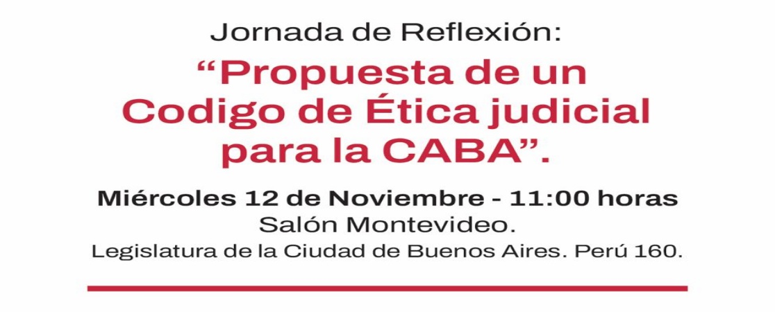 El Consejo de la Magistratura de la Ciudad tiene el agrado de invitarlos/las a la jornada de reflexion «Propuesta de un Codigo de Ética judicial para la CABA», la misma se llevara a cabo el 12 de noviembre a las 11:00 hs. en el Salón Montevideo de la Legislatura de la Ciudad de Buenos Aires ubicada en Perú 160.