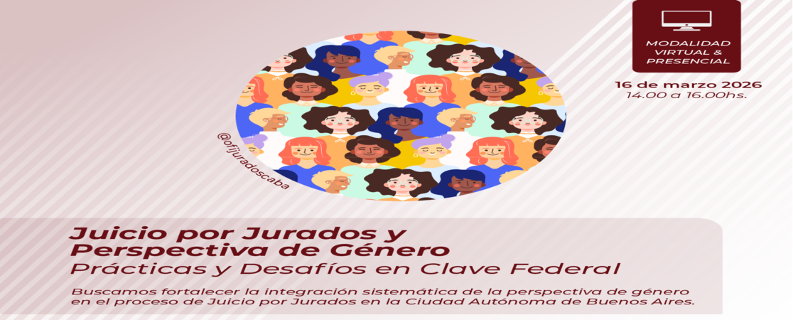 Desde el Centro de Justicia de la Mujer y la Oficina de Juicio por Jurados del Consejo de la Magistratura de la Ciudad Autónoma de Buenos Aires, tenemos el agrado de invitarlos/as a participar de la jornada “Juicio por Jurados y Perspectiva de Género: prácticas y desafíos en clave federal”, que se llevará a cabo el día 16 de marzo a las 14:00 horas, con sede formal en el Salón Plenario de Consejeros/as de este Consejo y modalidad virtual, a fin de garantizar su alcance federal.