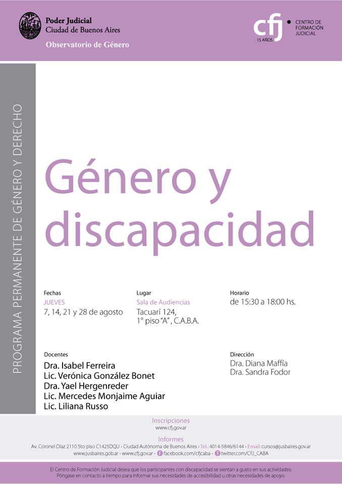Las clases tendrán lugar los días Jueves 7, 14, 21 y 28 de agosto, y estarán a cargo de las Dra. Isabel Ferreira, Dra. Yael Hergenreder, Lic. Liliana Russo, Lic. Mercedes Monjaime Aguiar y la Lic. Verónica González Bonet.
