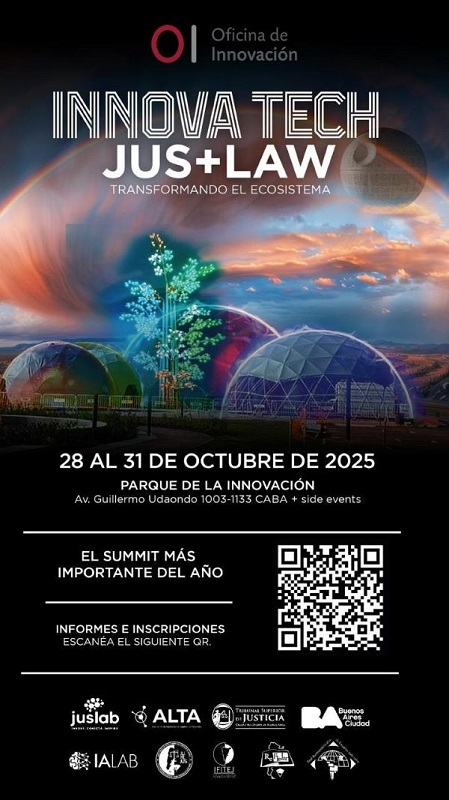 Los días 28, 29, 30 y 31 de octubre tendrá lugar en la Ciudad de Buenos Aires la “Semana de la Innovación Legal y Judicial en la Argentina” con el desarrollo del primer “Innova Tech Jus+Law ♦ Transformando el ecosistema legal-judicial”