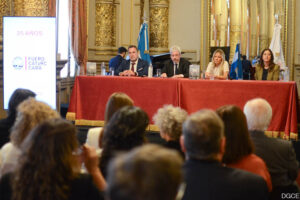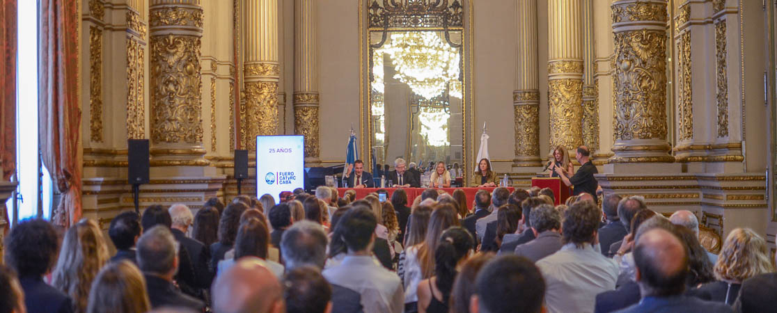 Este martes 2 de diciembre, en el Salón Dorado del Teatro Colón, se llevó a cabo el acto conmemorativo por el vigésimo quinto aniversario de la puesta en funcionamiento del fuero Contencioso Administrativo, Tributario y de Relaciones de Consumo. El evento tuvo como objetivo homenajear a las magistradas y magistrados que conformaron la primera integración del fuero y que durante estos veinticinco años coadyuvaron a su consolidación, como así también reconocer la labor de quienes hoy se desempeñan en los juzgados del fuero.