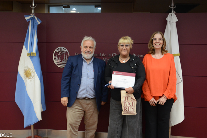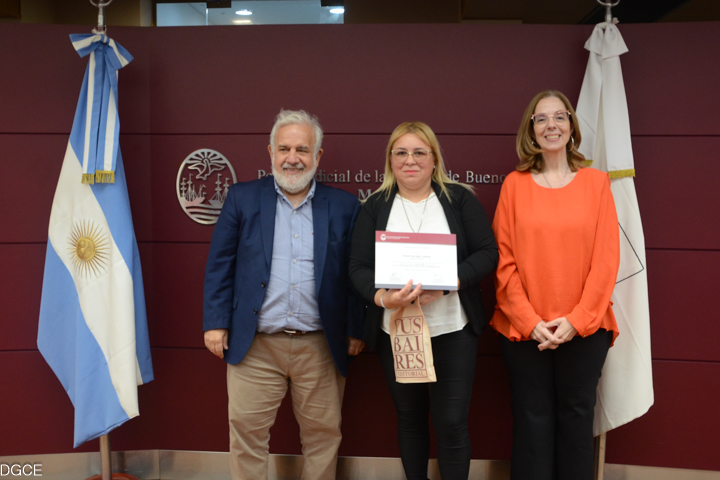 Estuvieron presentes en la entrega la consejera Lorena Clienti, la directora de la Dirección de Desarrollo Profesional y Capacitación Administrativa, Luciana Andrada, el director del Área de Educación de Adultos de la Ciudad, Pedro Schiuma, el asesor del Área del Adulto y el Adolescente del Programa “OPEL”, Cristian de Poli, y la coordinadora pedagógica del Programa “Adultos 2000”, Maria Inés Maanon.