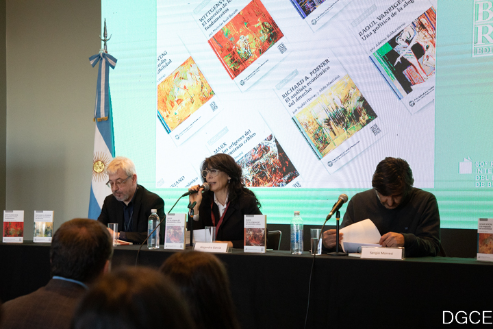 Al comenzar la presentación, la coordinadora general de la Editorial, Alejandra García, señaló: «El Bien Común representa nuestra colección más preciada y por eso siempre decidimos abrir con ella nuestra participación en la Feria Internacional del Libro de Buenos Aires, porque es una obra que trabaja sobre textos de escritores, filósofos, artistas y juristas, siempre vinculado con temáticas del derecho y judiciales«. Y agregó: «Esas vinculaciones son relevante porque nos permiten abrir un debate plurar y respetuoso desde miradas que van más allá de lo técnico jurídico«. También, García resaltó que el «espacio de la Editorial en la Feria del Libro muestra todo el verdadero trabajo que hace la Editorial durante todo el año«. «La Editorial Jusbaires busca acercar material de calidad y contenidos que sirvan para pensar y analizar pero también para generar aportes e imaginar futuros posibles para nuestra sociedad democrática» concluyó García.