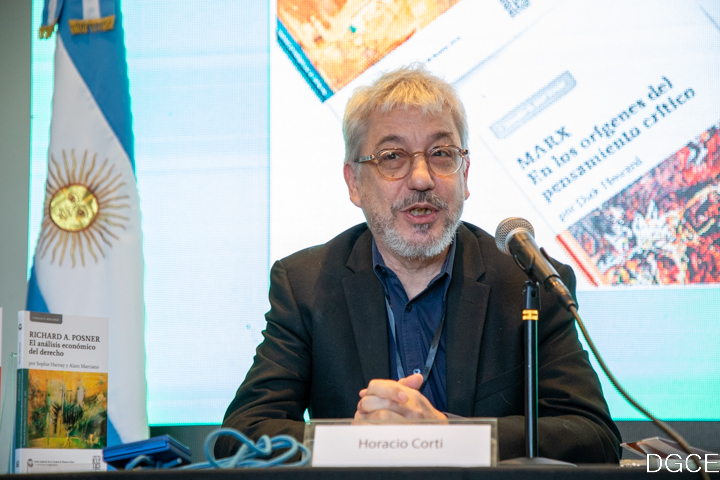 Por su parte, el cierre del evento estuvo a cargo del vicepresidente primero del Consejo, Horacio Corti, quien reflexionó sobre la participación activa del Consejo y la Editorial, en particular de su coordinadora general, Alejandra García, en la Feria del Libro. Respecto a la obra, Corti afirmó: «Son muy variados los autores que elegimos nosotros del enorme catalogo que tiene la Editorial, pero precisamente en esa diversidad que elegimos está la invitación a conversar y debatir en esta Colección El Bien Común, que es un poco el corazón de nuestra Editorial porque nos lleva al ámbito de la reflexión que nos aleja un poco de lo inmediato«. Sobre el texto de Marx de Dick Howard, Corti dijo: «Marx es un nombre con todo lo que significa ese nombre propio pero también un nombre común en muchísimas áreas de la vida, porque es un nombre de las ciencias sociales pero también un nombre muy valioso de la filosofía que, en definitiva, nos invita a hablar y repensar sobre lo más importante«.