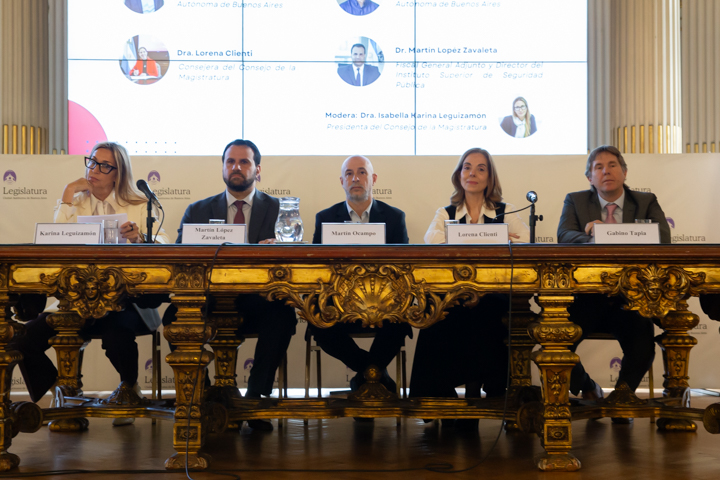 El evento fue presentado por la presidenta del Consejo de la Magistratura de la Ciudad Autónoma de Buenos Aires, Karina Leguizamón y la consejera Lorena Clienti y contó con la participación del vicepresidente segundo del organismo, Manuel Izura, los consejeros Luis Duacastella Arbizu, Gabriela Zangaro y Marcelo Meis y la secretaria de Administración General y Presupuesto del Poder Judicial, Genoveva Ferrero. Asimismo, el encuentro, que se llevó a cabo en el marco de la RES CM 202/2024 que articula el trabajo con Universidades de la Ciudad, contó con la participación de los expresidentes del Consejo, Francisco Quintana y Alberto Maques, los exconsejeros Javier Concepción y Alberto Biglieri, el presidente de la Cámara de Casación y Apelaciones en lo Penal, Penal Juvenil, Contravencional y de Faltas, Javier Buján, el ministro de Justicia porteño, Gabino Tapia, el procurador general de la Ciudad, Martín Ocampo, la Asesora General Tutelar, Carolina Stanley, el Fiscal General, Juan Bautista Mahiques, la Defensora General Marcela Millán, el fiscal general adjunto, Martín Lopez Zavaleta, las legisladoras porteñas Aldana Cruccitta y Inés Parry, la jueza de la Cámara Penal, Penal Juvenil, Contravencional y de Faltas de la CABA, Carla Cavaliere, el juez de la cámara de Casación y Apelaciones en lo PPJCyF, Carlos Rolero, el juez de Primera Instancia en lo Contencioso Administrativo, Tributario y de Relaciones de Consumo, Mario Olano Melo, la coordinadora general de la Editorial Jusbaires, Alejandra Garcia, el decano de la Facultad de Derecho de la UBA, Leandro Vergara, el subsecretario de Política Criminal y Asuntos Penitenciarios de la CABA, Leandro Halperin, la secretaria especializada en Materia Ambiental y Derecho Animal, Clara Bertotti, el director general de Supervisión Legal, Gestión y Calidad Institucional, Miguel Gliksberg, entre otros magistrados/as y funcionarios/as del Poder Judicial, decanos de instituciones universitarias, estudiantes y público en general.