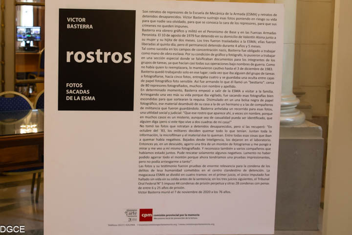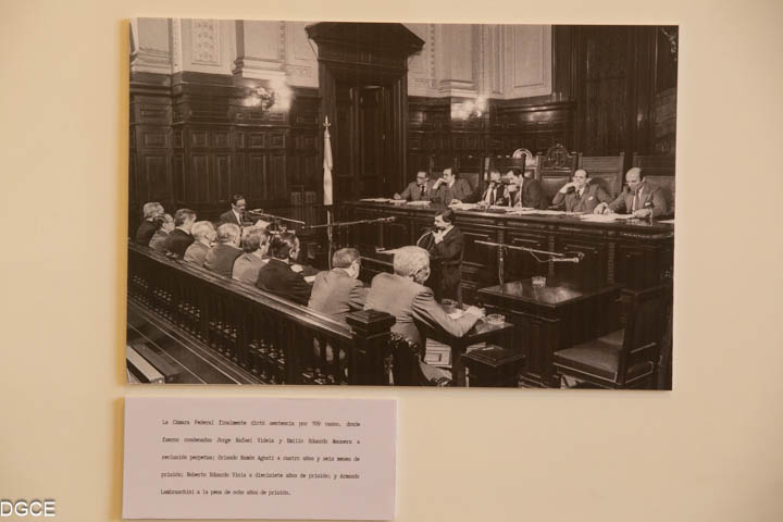 La exposición reúne imágenes emblemáticas de uno de los procesos judiciales más trascendentales de la historia democrática argentina. Incluye además, la muestra itinerante «Rostros, fotos “sacadas” de la ESMA» de Víctor Basterra, cuyas imágenes rescatadas durante su cautiverio se convirtieron en pruebas clave del Juicio a las Juntas. Esta presentación cuenta con la colaboración del Museo de Arte y Memoria de La Plata. Asimismo, se exhiben archivos fotográficos de Eduardo Longoni, reconocido por su cobertura histórica del juicio y su impulso para garantizar su difusión mundial mediante el sistema de “pool” periodístico, y finalmente incluye obras de Daniel Yako, que trabajó como redactor jefe en la agencia DyN y, al regreso del exilio, tuvo acceso a sala que le permitió producir valiosos materiales.