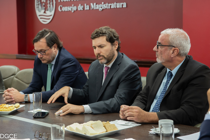 La mesa estuvo encabezada por el consejeros Marcelo Meis y convocó a la jueza de la Cámara en lo Contencioso Administrativo, Tributario y de Relaciones de Consumo, Laura Perugini, los jueces de Primera Instancia en lo Contencioso Administrativo, Tributario y de Relaciones de Consumo, Mario Olano Melo, Patricio Cánepa y Carlos Tambussi, el ex consejero y fiscal general adjunto en lo Civil y Comercial, Martín Converset, la secretaria de Innovación, Silvia Bianco, el ex consejero y el director general de Defensa del Litigante, Juan Pablo Zanetta, el secretario de la Oficina de Gestión Judicial de Relaciones de Consumo de la Cámara de Apelaciones del fuero, Pablo Beverina y representantes del equipo de la Dirección de Informática del Consejo, entre otros.