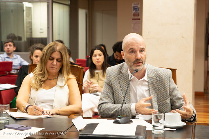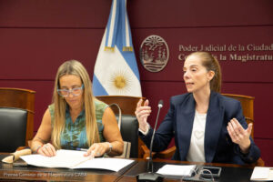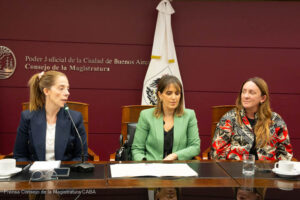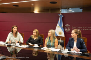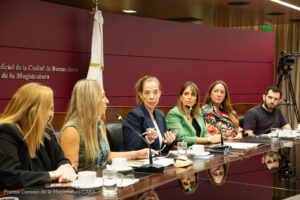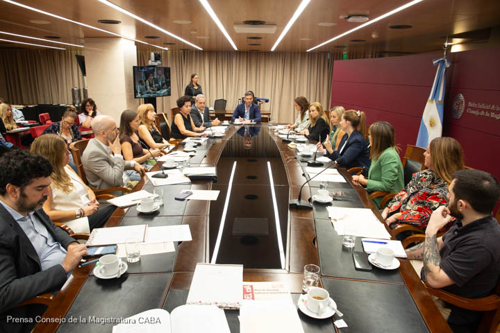 El encuentro contó con la participación de las consejeras Gabriela Zangaro y Rocío López Di Muro, la titular del Observatorio de la Discapacidad del Consejo de la Magistratura, Lucía Burundarena, la coordinadora de la Oficina de Género del Observatorio de Género en la Justicia, Aluminé Moreno, el titular responsable del Registro de Mesas de Trabajo, Faustino Guillermo Naveiro, el secretario general judicial del Ministerio Público Tutelar de la CABA, Alfredo Rocco, la asesora general Tutelar Adjunta de Salud Mental, Magdalena Giavarino, la titular de la Dirección de Medicina Forense Consejo de la Magistratura CABA, Nazarena Traba y el ex legislador de la Ciudad, Juan Manuel Valdes.