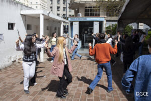 Luego de las presentaciones oficiales, los/as alumnos/as intepretaron temas con percusión, bailes inspirados en el caso que tuvieron que representar, dibujo y pinturas, y también se llevó adelante un simulacro de juicio por jurados acotado.